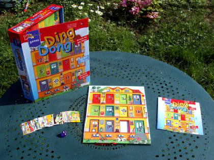Jeu de mémoire et d'observation à la présentation particulièrement soignée, Ding Dong fascine les jeunes joueurs et leurs parents par sa seule apparence. La grosse boîte solide abrite une amusante maison avec douze portes cachant quarante-huit situations. Il s'agit, après avoir lancé le dé, de retrouver ce qui se cache derrière la porte du nombre indiqué par le dé. Si on se trompe, on ne prend pas la carte. Tout ça me donne bien envie d'être grand-père… |