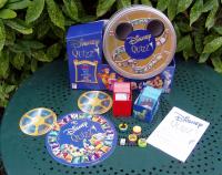 Disney Quizz gagne sur de nombreux tableaux. Les questions ne portent que sur les grands films ou dessins animés, alors que Trivial Pursuit abordait aussi le côté mercantile : parcs, produits dérivés. Les questions sont de deux types : rouges (difficiles, plutôt pour les adultes) ou bleues (faciles, pour les enfants). Enfin, Disney Quizz est, à ma connaissance, le premier jeu dont le tablier de jeu comporte des vraies oreilles de Mickey ! Le tout est présenté dans une jolie boîte en métal façon bobine de film. Ah ! J'oubliais… il faut quand même aimer un peu les jeux de questions-réponses et les films de Walt Disney ! |