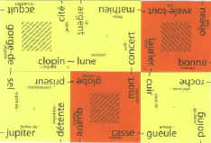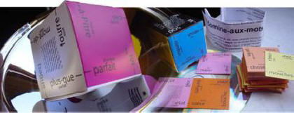Le jeu pourrait être adapté pour le milieu scolaire, à condition de retirer quelques cartes équivoques. La plus belle définition de notre première soirée Dominomot, au club de Pierre Bénite, a été trouvée par Bruce. Le mot à définir était : « Post-Salope » (obtenu de Post-Scriptum et Marie-Salope). La proposition de Bruce, xxxxxx a recueilli l'approbation générale. L'assemblée était également satisfaite lorsqu'un domino était posé, provoquant plusieurs nouveaux mots, et que tous ces mots recevaient des explications basées sur le même registre. Dominomot est présenté dans une toute petite boîte à prix tout à fait modéré. 92 cm³ de pur bonheur ! |