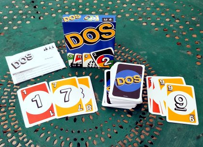 Dos, ou comment « déméliorer » un jeu ! Si Uno n'a jamais prétendu être un jeu révolutionnaire, il faut reconnaître que de nombreuses familles y jouent avec plaisir. L'intérêt du jeu réside surtout dans le bonheur qu'on peut éprouver à faire des crasses aux autres joueurs. Dos se présente comme un des successeurs de Uno. Le problème c'est qu'on y a supprimé tout l'aspect jeu d'ambiance pour privilégier un jeu de calcul ennuyeux. Au lieu d'une pile, il y en a maintenant deux ou plus. On peut poser une carte de même valeur ou deux cartes dont la somme est égale à la carte recouverte. Si les couleurs correspondent, on peut se débarrasser de une ou deux cartes supplémentaires. J'oubliais le plus important : quand il ne vous reste que deux cartes, vous devez dire « Dos ». Autant dire qu'on se bidonne vraiment. Le jeu contient 108 cartes, ce qui peut permettre de caler plusieurs armoires ou bahuts.