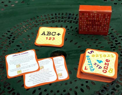 une face donne la ou les consignes, l'autre face contient des nombres en diverses graphies et couleurs (on a cependant échappé aux nombres romains). Le but est de retrouver sur la face "nombres" ceux correspondant à la ou aux consignes. ABC désigne les nombres écrits en lettres, 123 ceux écrits en chiffres. La couleur indique quel nombre lire. Un + ou un — signifie qu'il faut lire le plus grand ou le plus petit nombre. Et lorsque la face "consigne" indique plusieurs nombres, il faut ensuite concanténéer ceux-ci. Dans l'exemple ci-dessous, il faut d'abord trouver le plus grand nombre écrit en lettres, soit "quinze", puis il faut trouver le nombre écrit en chiffres rouges, soit "7". Le résultat final, qu'il faut être le premier à hurler, est donc "157".