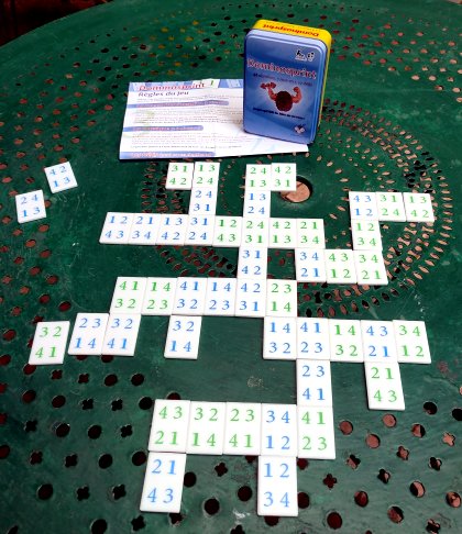 Frénétiquement, chacun essaye d'ajouter ses dominos à la construction commune. Le premier qui parvient à poser tous ses dominos gagne. Au début, tout se passe assez vite. Mais au fur et à mesure que les dominos se raréfient, trouver une place est de plus en plus difficile. Et à la fin, il y en a un qui est avant-dernier et un qui est second. |