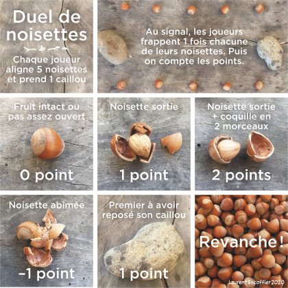 C'est la saison des noisettes. Laurent Escoffier nous propose, sur sa page facebook, un petit jeu amusant et pas cher pour lier le plaisir de jouer à celui de déguster. À consommer sans modération !