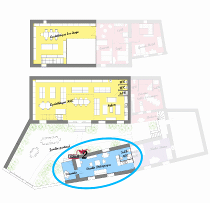 - L’Escale à 2 est un studio équipé d’un canapé lit confortable, d’une kitchenette équipée et d’une salle-de-bains WC. La superficie totale est de 37 m². Vous pouvez aussi profiter de la véranda ou du jardin.