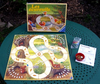 Le problème, c'est que la brouette se renverse dès qu'on y dépasse un chargement de six cônes. Il est donc prudent de ne pas trop la charger… mais parfois, ce sont les adversaires qui font des cadeaux indésirables ! Sans prétention, mais agréable à jouer, Les Écureuils est un des premiers jeux de filous pour les jeunes stratèges. Si le hasard y est important, les décisions le sont tout autant. Le jeu est aujourd'hui assez difficile à trouver en dehors du marché de l'occasion. |