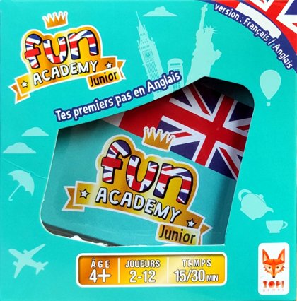 Fun Academy Junior est un peu l'adaptation en jeu de voyage de Memotep du même auteur et éditeur. Le but du jeu officiel est de gagner plus de points que les adversaires. Le but du jeu caché des parents est de faire apprendre ou réviser le vocabulaire anglais1 à ses chères têtes blondes. 1) Deuxième langue officielle dans deux pays de l'Union Européenne, Malte et Irlande, l'anglais reste cependant l'une des trois langues de travail de l'UE.