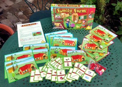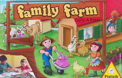 Family Farm est un jeu d'observation rapide. Chaque joueur possède un dessin représentant la ferme. Divers éléments sont éparpillés dans le décor, parfois un peu cachés. On retourne une carte et tous cherchent si au moins l'un des deux dessins de cette carte est présent sur sa ferme. Le premier qui pense pouvoir prendre la carte place sa main dessus. Mais s'il s'est trompé, la carte lui coûtera un point lors du décompte final. Quelques variantes sont proposées dont une très difficile où il faut mémoriser sa planche puis la retourner face cachée. La pénalité d'un point en cas d'erreur est à mon avis insuffisante. Il y a plus d'une chance sur deux qu'au moins un des éléments de la carte soit présent sur votre dessin. Dès lors, il est tactiquement valable de prendre toutes les cartes sans même regarder. Pour corriger ce léger défaut, il suffit de pénaliser de deux points chaque carte fausse.