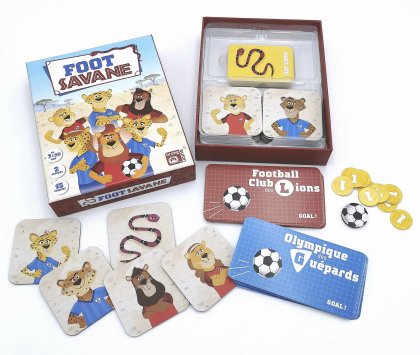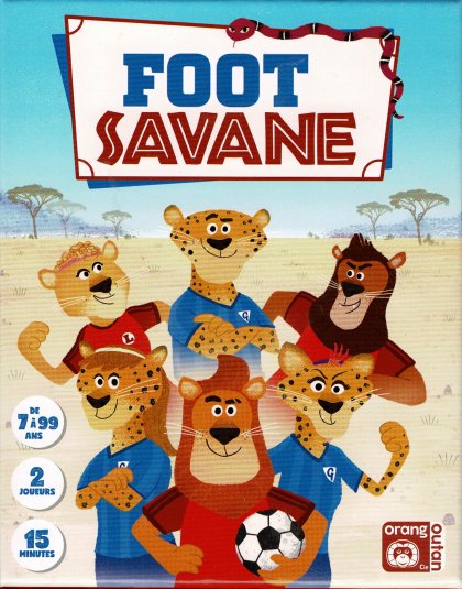 Des quatre premiers jeux proposés en 2020 par Orang-Outan Cie et Co, Foot Savane est probablement le plus inattendu. Sur le thème maintes fois visité du football, Chieko Stehr et Richard Stehr ont imaginé des mécanismes qui simulent un petit match de football à partir de 16 tuiles qui se déplacent et se retournent dans une grille de 4 × 4 cases. La partie oppose l'équipe des guépards à celle des lions. On ne sait pas s'il s'agit des Lions indomptables du Cameroun, des Lions de la Teranga (Sénégal), des Lions de Mésopotamie (Irak), des Lions de Perse (Iran), des Lions de Singapour, des Lions des Caraïbes (Cuba), des Lions de Bulgarie, des Lions rouges du Luxembourg, des Lions rouges de Macédoine du Nord ou des Three Lions (Angleterre). À vous de décider ! Les deux faces de chaque tuile montrent soit un joueur, lion ou guépard, soit un terrain vide, soit un serpent, selon les répartitions suivantes :