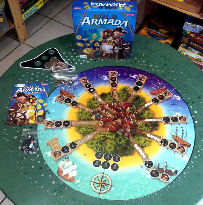 C'est dans les vieux pots… Avec Gold Armada, Reiner Knizia revisite le Poker d’as avec un grand tapis de jeu et une règle familiale. Après avoir lancé les dés, le joueur actif peut prendre une récompense sur l'une des jetées s'il a obtenu les symboles demandés. Plus on prend de récompenses, plus il devient difficile d'en prendre une nouvelle sur cette jetée. En revanche, la récompense est plus intéressante !
