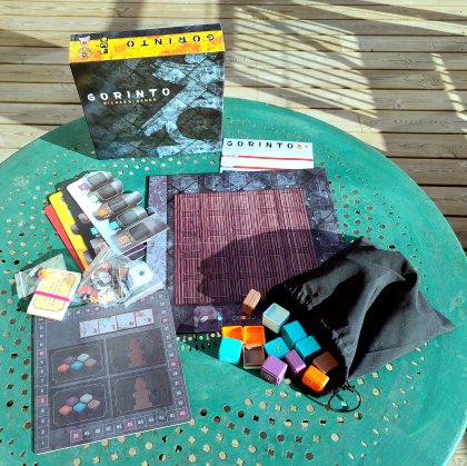 Gorinto tient son titre du Gorintō Ce sont ces cinq éléments que les joueurs vont collecter sur un tablier central pour constituer des piles devant eux. Chaque élément permet de récupérer d'autres éléments selon un mode qui lui est propre. Et la hauteur de chaque pile conditionne combien d'éléments on peut récupérer au tour suivant. Le jeu se déroule en quatre saisons. À la fin de chaque saison, on marque des points selon des objectifs communs différents à chaque partie. Et à la fin de la partie, on ajoute des bonus pour les deux éléments déterminés en début de partie. Malgré le grand nombre de points marqués pendant la partie, il n'est pas rare que les scores finaux soient très proches. Le jeu se pratique idéalement à deux pour éviter les effets de faiseurs de rois. La règle propose cependant un très intéressant mode de jeu à quatre en équipes caractérisé par deux mécanismes subtils : lorsqu'un joueur récolte des éléments, il en donne un à son partenaire ; au lieu d'avoir deux objectifs communs pour tous les joueurs, on distribue un objectif aux quatre coins de la table et chacun des joueurs partage un objectif avec son adversaire de droite et de gauche et aucun avec son partenaire. Gorinto n'est pas le premier jeu de collecte, mais c'est assurément un des plus aboutis et passionnants.