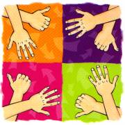 La boîte contient un simple jeu de cartes carrées, représentant des mains, ouvertes ou fermées, pointant d'un ou plusieurs doigts, paume ou dos vers le haut, croisées ou non etc. Les joueurs doivent reproduire le plus vite possible la position demandée avec leurs mains. Le plus lent à reproduire le dessin est pénalisé et reçoit la carte. « Rien de bien drôle », me direz vous. Essayez, vous verrez, et surtout vous entendrez les éclats de rire. Le plus drôle, c'est que certaines cartes représentent des positions impossibles à reproduire, à moins qu'un chirurgien ne se soit trompé en vous recousant les mains suite à un accident de tondeuse. Dans le premier exemple, il faut vite reproduire la figure (on peut être plus ou moins regardant sur le croisement des bras par au-dessus ou par en-dessous). Le second exemple est quant à lui impossible. Il faut alors rapidement croiser ses bras sur sa poitrine pour le signifier, ou lever les mains en l'air si le dessin impossible représente des bras croisés. La curiosité dans ce jeu, c'est que plus on perd, plus on rit… |