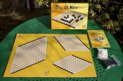 Hex est un petit jeu tactique pour deux joueurs, imaginé indépendamment par deux auteurs géniaux. Le poète et scientifique Piet Hein l'a inventé en 1942 au Danemark. Il avait également créé un casse-tête célèbre, le Soma-Cube en 1936.