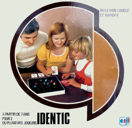 Identic est décliné en deux règles qui ne varient que par le nombre de billes utilisées. La première utilise quatre billes et huit cases, la seconde cinq billes et dix cases. Le but est de reproduire le schéma logique des cartes sur les cases du jeu, en déplaçant le moins de billes possible. Par exemple, sur la carte en bas à droite de la photo, on voit que les billes doivent être regroupées en trois ensembles : bleu-rouge-jaune, rose et vert. Le résultat est visible sur les billes. À son tour, le joueur reçoit trois ou quatre cartes et doit essayer d'en reproduire le plus grand nombre. Il dispose de trois ou quatre mouvements pour cela. Un mouvement consiste à prendre une bille et à la poser ailleurs. Identic serait publié aujourd'hui, il prendrait probablement la forme d'un jeu de rapidité, comme Carrousel. Notre époque est pressée ! Ici, il s'agit d'un jeu de réflexion où le temps n'est pas limité, ce qui peut s'avérer pénible avec certains joueurs qu'on connaît tous…