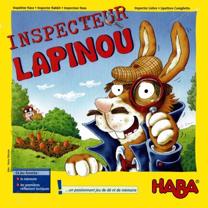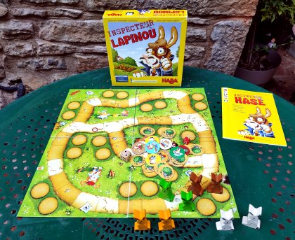 La bonne idée dans le jeu Inspecteur Lapinou est de mélanger un jeu de mémoire et un jeu de parcours. Chaque joueur dirige deux lapins inspecteurs qui recherchent les bandits cachés dans la campagne. Mais il n'est possible d'arrêter que la bande au complet, soit les deux bandits jumeaux en même temps. Pour cela, il faut parvenir à disposer ses deux lapins inspecteurs sur des cases en face des deux cachettes de la bande que l'on veut arrêter. Pour déplacer ses lapins, le joueur choisit de lancer soit le dé « 1 à 3 », soit le dé « 1 à 6 », soit les deux en additionnant le résultat. Un peu de mémoire, un peu de tactique et un peu de chance seront nécessaires. Inspecteur Lapinou renouvelle agréablement les jeux de mémoire.