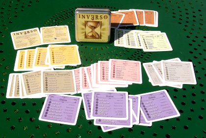 Inverso repose sur une idée tellement simple qu'on s'étonne qu'elle n'ait encore donné lieu à aucun jeu. On prend un mot, on en retourne toutes les lettres, puis on le lit à haute voix. Il faut alors retrouver le mot original. « Pourquoi acheter un jeu ? », me direz-vous, « Je peux moi-même le faire sans qu'on me prépare le travail ». Oui et non. Car les mots sélectionnés ici l'ont été avec soin, et ont été classés par catégories : cinéma, gastronomie, histoire et géographie, littérature, luxe et people, musique, sport. Par ailleurs, quand on lit les mots, il est très facile de trouver, mais quand on les entend, c'est une autre affaire. Les délais d'impression sont hélas tels que le jeu est déjà un peu démodé : on trouve ainsi une énigme « Yzokras Ailicéc » ! Il est de bon ton, dans certains salons, de mépriser les jeux simples. Mais heureusement, il existe encore des amateurs de jeux d'esprit qui, sans être rafinés, n'en sont pas moins drôles. Et même si l'on finit toujours par trouver, on est stimulé par cette sacrée Tante Ernestine, qui trouve toujours avant les autres. |