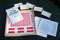 La présentation est spartiate. La boîte en bois comporte le tablier de jeu en fond, ainsi que cinq chevalets en carton et quatre-vingts pions. Bien entendu, Albert les a réalisés dans la mousse qu'il affectionne tant, et qui est un peu la marque de fabrique de ses créations. Le Jeu d’Albert est une sorte de jeu de dominos. Les pions sont intégralement distribués, et chacun en reçoit sa part. Il va falloir s'en débarrasser en formant des groupes de trois pions qui se suivent, et qui seront ensuite placés sur le tablier. Comme il n'y a que six bases de construction, il faut agir finement pour se défaire au plus vite de pions qui peuvent devenir de véritables boulets. Quand, par exemple, on aura posé 11-12-13 et 16-17-18, ceux qui possèdent sur leur chevalet le 14 et le 15 peuvent commencer à envisager d'en faire des confitures. En revanche, poser le troisième pion d'une série permet de rejouer. Bien sûr, le hasard intervient beaucoup dans le tirage des pions. Mais certains s'en sortent toujours mieux que d'autres… |