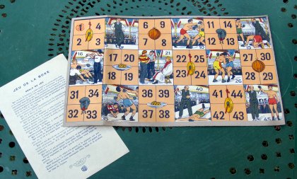 Le Jeu de la boxe, édité comme la Course d’ânes par la Manufacture Lyonnaise des Jouets, est une variation du Jeu de l’oie, sur le thème du pugilat. Fabriquer votre jeu