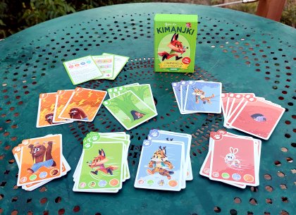 Nul n'est tranquille dans la forêt. Le lapin se fait chasser par le renard, le renard et le lapin sont les proies du lynx, l'ours est friand de lynx, de renard et de lapin ! Les plus faibles peuvent aller dans un refuge, mais certains ne sont pas sûrs. L'orage met tout le monde d'accord et celui qui le joue remporte toutes les cartes. Jeu du Kimanjki est un petit jeu de plis joliment illustré par Teressa Ong.