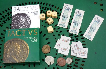 S'il n'y a plus de jeton/carte disponible au centre de la surface de jeu, alors le joueur se sert chez un adversaire. Quand un joueur a réussit à obtenir un jeton/carte, le joueur suivant relance tous les dés. Le jeu est très simple, fortement marqué par le hasard, avec une pointe de sadisme qui consiste à choisir chez quel adversaire on se sert. Dans certains cas, la partie peut devenir très, très, très longue ! Mais il est vrai que les légionnaires romains, quand ils n'étaient pas occupés avec les populations autochtones, avaient beaucoup de temps à tuer … |