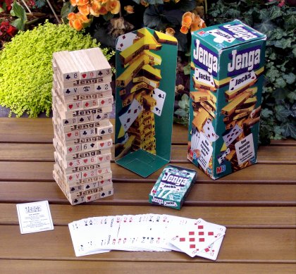 Jenga Jacks, c'est Jenga dans lequel cinquante-deux blocs reçoivent la valeur d'une carte. Trois blocs portent un Joker, et deux blocs portent un « Changez de sens ».
