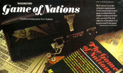 Miles Copeland, agent de la CIA, a écrit en 1969 un livre controversé et cynique, "The Game of Nations: The Amorality of Power Politics" où il parle de son activité au moyen-orient. De ce livre, il tirera un jeu, Le Jeu des nations, mélangeant activité politique et économique sur fond de puits de pétrole. On peut résumer le jeu en disant qu'il s'agit d'un mélange de Monopoly, de Risk et de Diplomatie, sans parvenir à égaler aucun de ses trois parents. Comme à Diplomatie, vous pouvez vous retrouver éliminé et contraint de trouver une autre occupation pendant les deux ou trois heures qu'il faudra à vos compagnons de jeu pour terminer la partie. Pour collectionneurs uniquement.