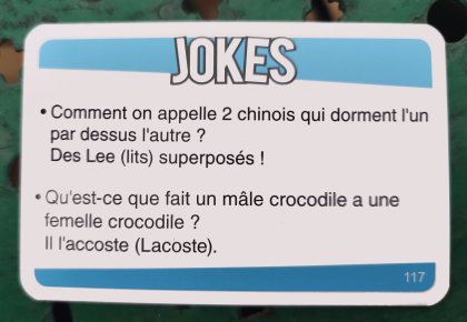Un plus appréciable : les blagues les plus ésotériques sont expliquées, entre parenthèses, pour les malcomprenants.