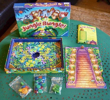 Jungle Bungle s'adresse surtout aux jeunes joueurs. Un trésor a été perdu dans la jungle et pour le retrouver, il faut utiliser un détecteur magnétique. Le gros aimant sert à rapporter les pièces découvertes jusqu'au trou, qui permet de les sortir. Le hasard du dé est souvent prépondérant : quand on trouve un trésor, il est préférable de tirer ensuite une grosse valeur pour pouvoir franchir le nombre de cases nécessaires. Sinon, c'est un adversaire qui pêchera le magot découvert.