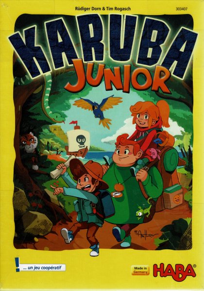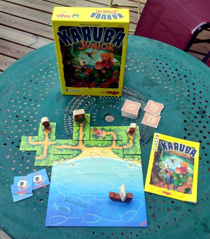 Si le thème et le matériel – des tuiles avec des chemins – rappelle bien entendu le merveilleux Karuba, Karuba Junior n'a rien à voir avec son aîné au niveau des mécanismes. On a ici affaire à un très classique jeu coopératif pour enfants, où le hasard mène la barque et où tous espèrent gagner tous les trésors avant que le bateau pirate n'arrive au port. Les décisions sont réduites au minimum mais il faut cependant prendre garde à conserver des issues disponibles en posant les tuiles. Enchante les enfants. Mais les parents et grands-parents ont hâte de pouvoir jouer à Karuba avec eux dès qu'ils auront l'âge.