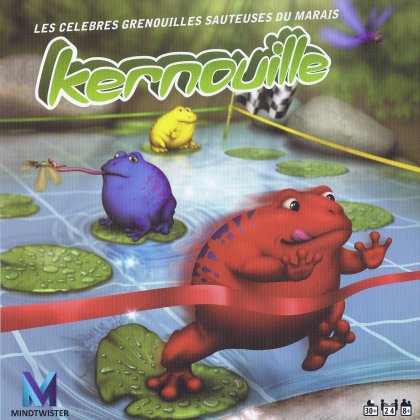 Est-ce la mauvaise météo qui influence les éditeurs ? Toujours est-il que les créations à base de grenouilles fleurissent. Kernouille est directement dans la lignée du Jeu de l’Halma ou des Dames chinoises : le but est d'être le premier à amener ses trois grenouilles sur le côté opposé. Pour y parvenir, on dispose de cartes qui dictent le type de déplacement, en distance et en direction. On ne peut aller que sur les nénuphars, et à chaque tour on peut en déplacer un avant de jouer sa grenouille. Tous les joueurs disposent des mêmes cartes, mais elles n'arrivent pas au même moment. Lorsque c'est à vous de jouer, vous voyez toutes les possibilités des adversaires pour leur prochain tour. Vous pouvez donc en profiter pour choisir judicieusement votre déplacement, voire votre déplacement de nénuphar.