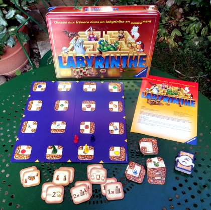 À l'occasion du 25e anniversaire de son best-seller Labyrinthe, Ravensburger nous a proposé une boîte métallique en édition limitée. Il fallait être un peu devin pour comprendre que la règle était légèrement différente, puisqu'elle proposait une variante. L'intérêt de cette édition réside essentiellement dans cette variante. Douze tuiles portent au dos des pouvoirs spéciaux : jouer une nouvelle fois, changer son pion de place avec un autre joueur… Le jeu est un peu renouvelé, mais on peut aussi jouer selon la règle originale. Vous trouverez, à la suite des règles, les dos de tuile à imprimer pour transformer votre édition ordinaire en édition spéciale.