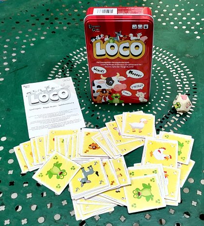 Loco est un jeu d'observation rapide. Chacun a des cartes disposées devant lui. Lorsque le dé indique un animal que vous possédez ou un nombre correspondant au nombre de cartes d'un de vos animaux, vous devez hurler le cri adéquat pour vous défausser de ces cartes. Quand personne ne peut défausser, tous les joueurs piochent une nouvelle carte qu'ils ajoutent à leur ménagerie. Rien de bien nouveau, mais l'occasion d'apprendre que les grenouilles hollandaises font « ribbit » !