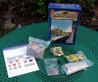 À première vue, on pourrait croire que Lungarno est un jeu de tuiles comme il en est sorti de nombreux après Carcassonne. En fait, c'est un jeu de majorité, qui pourrait être très agréable si le graphisme n'était aussi illisible. Les règles se maîtrisent rapidement, mais on n'a guère envie de rejouer à un jeu où l'on peut perdre parce que des couleurs ne se distinguent guère sur des tuiles surchargées de dessins inutiles. Le mécanisme est intéressant. Dommage.