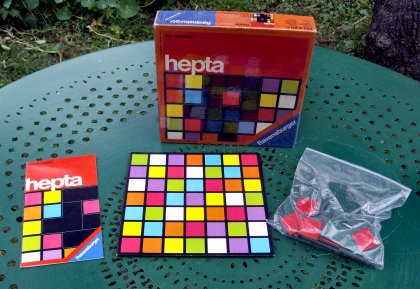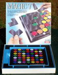 Magic 7 a été d'abord édité sous le nom Hepta chez Ravensburger. Il a ensuite été inclus dans la réédition de trois jeux chez Franjos, sous le nom Die Drei. L'édition présentée ci-dessous est certainement la plus belle des trois, avec ses couleurs pétantes et ses pièces en véritable plastique.