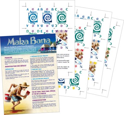 2015 : Maka Bana pour 8 ou 10 joueursVous aviez acheté la première ou la deuxième version de Maka Bana publiée chez Tilsit et vous avez craqué pour les indéniables attraits de la nouvelle édition chez Sweet November. Je vous en remercie. Grâce à vous, je peux manger mes pâtes avec du Comté rapé ET de la sauce tomate. Mais, du coup, votre première boîte prend la poussière, ce qui vous attriste. L'extension 8-10 joueurs est pour vous ! Elle va vous permettre de transformer votre première boîte en extension de la seconde pour 8 ou 10 joueurs !