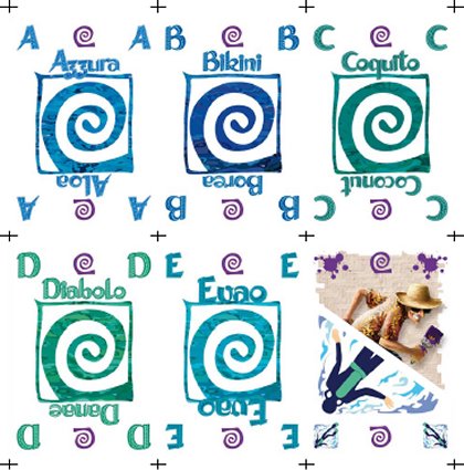 Tout est expliqué dans le fichier que vous trouverez intégré aux règles téléchargeables. Pour chacune des cinq couleurs de la première boîte, vous trouverez de quoi imprimer six étiquettes à découper et à coller sur les anciennes cartes Azzuza, Biquini, Coquito, Diabolo, Peinture et Peinture.