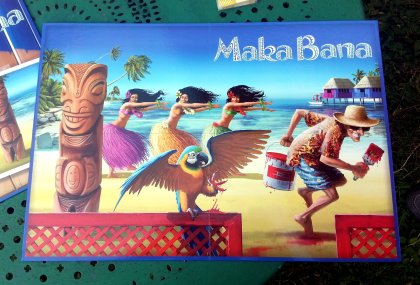 2003 : Maka Bana chez TilsitMaka Bana, qui s'appelait à l'origine « Paillote », est mon premier jeu édité (et pour l'instant le dernier aussi). Maka Bana est le jeu le plus génial qui ait jamais été inventé, et en plus, les illustrations de Johann Aumaitre sont tout simplement splendides. Mais si je vous le dis, vous n'allez pas me croire, sous le prétexte falacieux que j'en suis l'auteur. Peu importe. Il me suffit de voir le sourire dans les yeux des familles et des groupes d'amis qui y jouent pour recevoir ma récompense. Mais des sous, c'est pas mal aussi ! Donc achetez Maka Bana massivement, offrez Maka Bana autour de vous, exigez de votre Comité d'Entreprise qu'il attribue un exemplaire à chaque salarié, de votre ludothèque qu'elle en achète dix exemplaires, de l'école de vos enfants qu'elle en équipe sa bibliothèque…