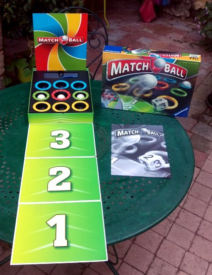 Match Ball est un jeu d'adresse. À tour de rôle les joueurs doivent lancer une balle de ping-pong de sorte qu'elle rebondisse sur la planche 1, 2 ou 3 selon la valeur du dé lancé préalablement, pour ensuite terminer dans l'un des trous de la boîte-cible. Le matériel est agréable mais les auteurs ont oublié de se remuer le cerveau pour créer une règle intéressante. On préférera très nettement Medieval Pong, dans le même style de jeu et chez le même éditeur, avec une règle bien plus amusante.