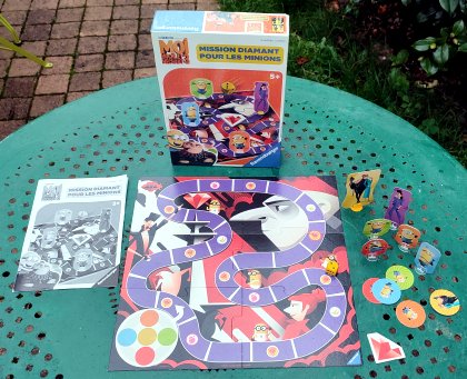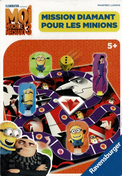 Dans « Mission Diamant pour les Minions », les Minions À son tour, le joueur actif dispose d'autant de lancers d'un classique dé à 6 faces qu'il y a de participants. Après chaque lancer, il choisit quel Minion avancer, sachant que chacun ne pourra être avancé qu'une fois. Évidemment, on préférerait que ce soit son propre Minion qui attrape le méchant, ce qui signifierait la victoire. Mais laisser celui d'un partenaire de jeu à la traîne risque de le faire attraper par Balthazar qui avance automatiquement de trois cases après le tour de chaque joueur. Et moins il y a de Minions en course, plus vite Balthazar avance et plus la victoire se fait incertaine. Un mécanisme semi-coopératif astucieux.