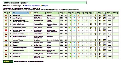 Ce tableau affiche de nombreux éléments. Les noms des jeux, des auteurs et des éditeurs ne sont pas affectés de liens pour ne pas alourdir les grands tableaux.