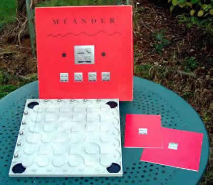 Plusieurs variantes sont possibles. Le matériel est de toute beauté, malgré sa froideur extrême. On peut cependant regretter que la moindre poussière déjoue les lois de la pesanteur. Il est donc important que le tablier, ainsi que la semelle des tuiles, soient parfaitement propres, pour éviter les soubresauts. Meander est un jeu rare et pratiquement introuvable. Les collectionneurs