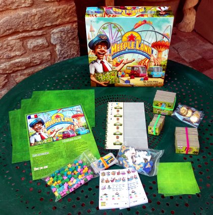Quand on ne pratique pas les jeux de société moderne, on a parfois le temps d'aller faire un tour dans un parc d’attractions. Quand on est joueur, on les gère ! Vous voici donc affairé à concevoir un parc meilleur que ceux de vos concurrents. Pour marquer des points il faudra créer des attractions qui correspondent aux goûts des visiteurs, offrir de la variété, créer des allées qui ne débouchent pas sur rien et attirer les clients les plus intéressants : ceux qui passent leur journée à acheter des sandwiches, des cadeaux et des tickets d'accès aux toilettes. Évidemment, vos adversaires ne vont pas vous faciliter la tâche. Et il faudra rapidement que le parc rapporte des revenus. Au début, vos investisseurs financent les premiers équipements mais plus le jeu avance, plus il faudra compter sur vos propres ressources. Facilement abordable, Meeple Land s'adresse autant aux joueurs chevronnés qu'aux moins aguerris. Et on a toujours plaisir à retourner au parc.