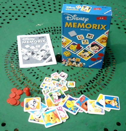 Les seize grandes cartes sont disposées face visible en un grand carré. Les petites cartes, qui représentent les mêmes personnages de Walt Disney, sont disposées en son centre, également face visible. À chaque tour, on jette le dé et on avance le pion qui s'arrête sur un personnage. Si celui-ci est visible au centre, il faut le retourner face cachée. Sinon, il faut le retrouver pour gagner un jeton ! Cette règle pourrait tout à fait se pratiquer avec n'importe quel type de Memory, mais le fait de disposer de petites et de grandes cartes facilite pas mal la pratique du jeu. La règle est intéressante, mais le titre a dû faire penser à nombre d'acheteurs potentiels qu'ils avaient déjà le jeu dans leur ludothèque.