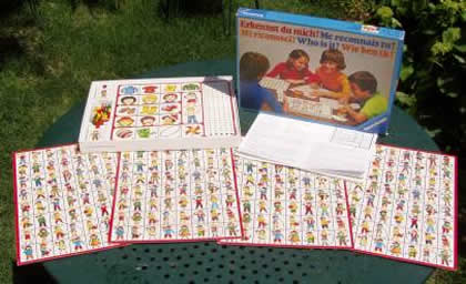 La troisième règle est plus un jeu de rapidité. Le codeur prépare le tableau avec une fiche verte ou rouge dans chaque emplacement. Il soulève ensuite le couvercle, et il s'agit d'être le premier joueur à annoncer le personnage caché… Un peu l'ancêtre de Rapidcroco, en quelque sorte… |