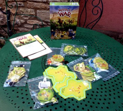 Avec son troisième jeu, Meeple War, l'éditeur toulousain Blue Cocker a décidé de tout mettre en œuvre pour me séduire : interaction forte à la limite du jeu de bourrins, habile gestion du temps, choix et construction de bâtiments, pose tactique de tuiles, le tout ponctué d'une once de hasard avec une durée de jeu dépassant rarement une heure. Je n'ai pu jouer à toutes les nouveautés présentées au festival des jeux de Cannes 2016. J'aurais donc du mal à établir un palmarès des meilleurs nouveautés. Mais celui-ci m'a paru indispensable, capable de séduire à la fois les amateurs de bagarres et de jeux de gestion, les joueurs chevronnés ou moins expérimentés. À déguster avec un pot de rillettes ! (gag privé en forme de clin d'œil à la talentueuse illustratrice Anne Heidsieck)