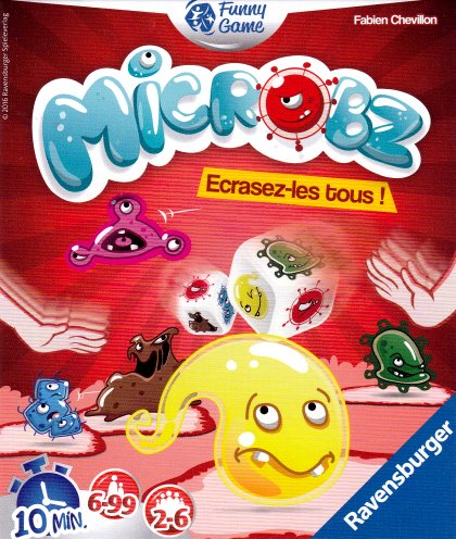 Observation et rapidité : un joueur lance les deux dés qui désignent des Microbz. Il faut alors être le plus rapide à taper sur une carte qui montre les mêmes bestioles ou sur la pile au centre en cas d'absence. Quand on applique la variante expert, après une ou deux parties avec la règle de base, la face bleue de la carte au sommet de la pioche modifie la règle. Amusant.