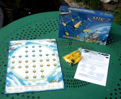 À première vue, Mik-7 ressemble fortement aux traditionnels Assaut, Le Renard et les Poules ou encore Chat et Souris. En fait, il est inspiré de tous ceux-ci en même temps qu'il va plus loin en proposant de multiples combinaisons entre positions de départ et objectifs. La caractéristique commune à toutes ces règles est l'opposition asymétrique, constante des jeux de chasse. Le flanc de la boîte indique : « Le seul jeu au monde où les deux joueurs ont une tactique et un objectif différent. » Ignorance ou prétention ? Je conseillerais à l'auteur d'ouvrir un livre consacré aux jeux traditionnels.