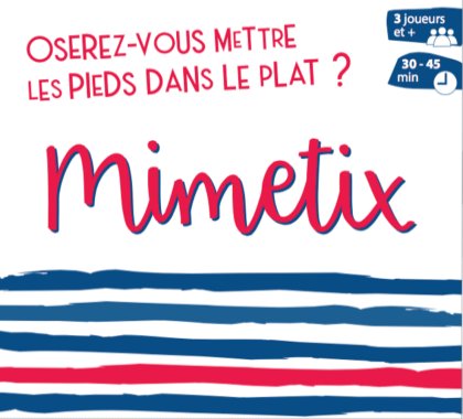 Mimetixa comme sous-titre « Le jeu de mimes des expressions françaises ». Ce n'est toutefois pas le premier jeu de mime, ni le premier jeu où il faut faire deviner des expressions. On pourrait citer le célèbre Time’s Up! ou le moins connu et néanmoins très bon D’expression en expression !. L'intérêt de cette petite et compacte boîte (10×11×6 cm) est la richesse de son contenu avec pas moins de 460 expressions à faire deviner à l'assemblée ou à votre équipe selon la variante choisie.