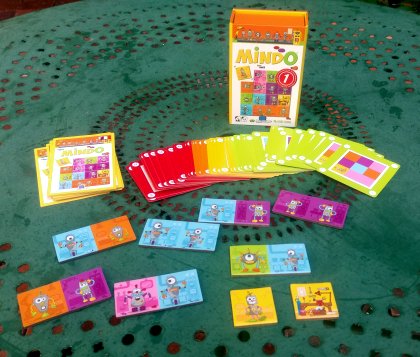 En tant que jeu solitaire, Mindo n'aurait normalement pas sa place dans la collection de l'Escale à jeux. Mais comme beaucoup de jeux solitaires, il peut se pratiquer à plusieurs, à condition de réunir autant de boîtes que de joueurs. Le prix de chacune des boîtes est peu élevé, ce qui permet une telle opération. Mindo est présenté en quatre titres : chats, chiens, licornes et robots. Les règles sont identiques et les difficultés comparables, même si les cartes diffèrent d'une série à l'autre. On distingue quatre niveaux de difficulté :