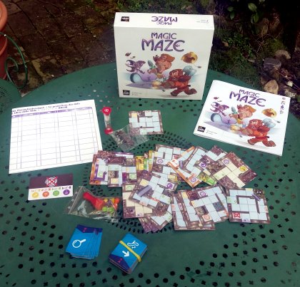 Trop de jeux coopératifs tombent dans un écueil classique : un ou deux joueurs prennent la direction des opérations et les autres sont réduits au rôle d'exécutants. Heureusement, quelques auteurs sont parvenus à contourner cet obstacle comme Antoine Bauza avec son génial Hanabi. Dans Magic Maze, Kasper Lapp met en œuvre deux bonnes idées. D'une part, il attribue à chacun un rôle qu'il est le seul à pouvoir remplir et qui est indispensable à la réussite de l'équipe. D'autre part, il interdit, pendant la majeure partie de chaque manche, toute communication verbale. La seule communication autorisée consiste à poser un pion devant le joueur dont on estime qu'il doit vite faire quelque chose, en espérant qu'il comprenne. Le but de la compagnie est de sortir du labyrinthe dans un temps limité par des sabliers. Quand vous vous montrerez efficaces, vous pourrez aborder un scénario plus difficile. Il y en a dix-sept. Chacun d'eux peut être réalisé plusieurs fois puisque l'ordre de sortie des tuiles varie. Vous en avez pour un certain nombre de soirées. Un autre atout important : vous pouvez jouer jusqu'à huit joueurs et un mode solo convaincant est même disponible. Indispensable