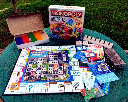 On ne compte plus les jeux développés à la suite du classique Monopoly. Beaucoup ne sont que des produits marketing sans grand intérêt ludique. On trouve même quelques auteurs réputés qui se sont essayés au genre (Monopoly Trader) et il n'est pas impossible que quelques-uns de ces jeux présentent un certain intérêt comme Monopoly Mega Édition ou Monopoly Deal. Bien que Monopoly Builder ne soit pas crédité, le jeu appartient au groupe restreint des jeux dérivés réussis. Rassurons tout de suite les habitués : la règle capitaliste sauvage essentielle est conservée : si un joueur oublie de vous demander de payer son loyer, la prescription commence dès que le joueur suivant a lancé les dés ! La principale nouveauté du jeu, c'est la zone centrale sur laquelle chacun va bâtir des gratte-ciel à l'aide de ressources gagnées grâce à ses propriétés. Un seul joueur construira le penthouse, au cinquième étage et mettra fin à la partie. On compte alors, non les sous mais les points. Les buildings rapportent beaucoup de points mais il ne faut pas négliger les classiques groupes de propriété. Plus rapide et plus vivant que le classique Monopoly, Monopoly Builder est une alternative agréable à jouer en famille. Je pressens que quelques ennemis irréductibles du Monopoly vont me croire devenu fou d'attribuer «